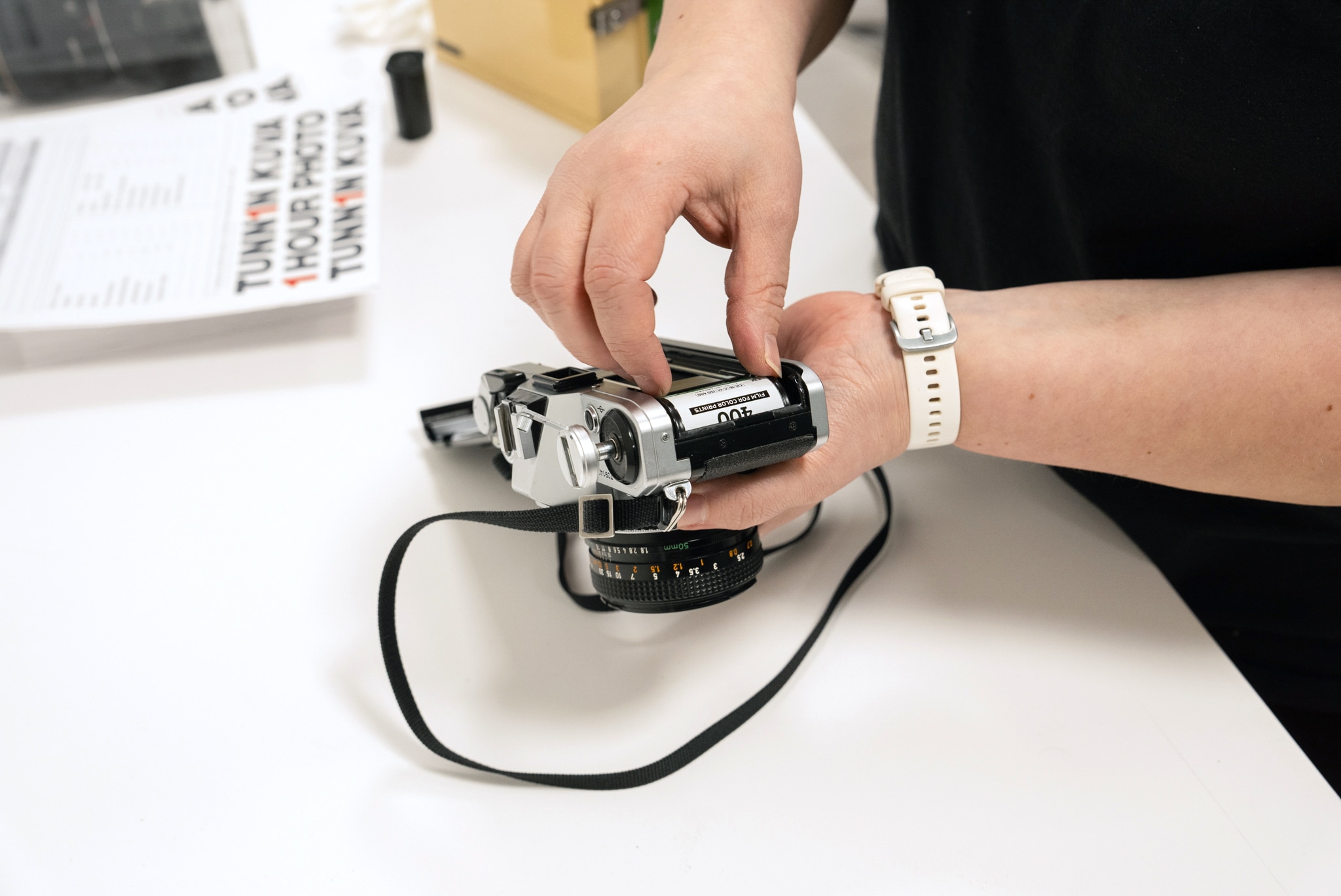 - Kerro, haluatko filmin kehitettynä paperikuviksi, ainoastaan skannattuna digitaalisiksi kuviksi vai molempina versioina. Voit ostaa uuden filmirullan samalla matkaasi!